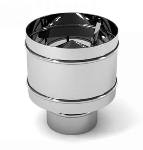 Дефлектор для дымохода (искрогаситель) - завершающий элемент дымоходной системы. Дефлектор выполняет функцию усилителя тяги при сильном боковом ветре и защищает дымоход от попадания атмосферных осадков. Главным отличием дефлектора (искрогасителя) от обычного зонта является защитный кожух, который защищает зонт от порывов ветра и не позволяет задувать дымовую трубу. Изготавливается из разных марок жаропрочной нержавеющей стали.