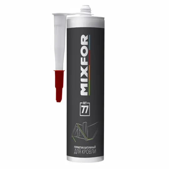 Битумный герметик для кровли MIXFOR MT-77 - это однокомпонентная пластичная битумная масса чёрного цвета для герметизации и склеивания соединений между кровельными материалами или для мгновенного устранения протечек в крышах и желобах.
