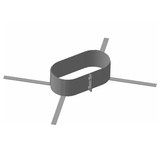 Хомут в кладку овал - элемент используется для крепления и центрирования дымохода из нержавеющей стали в шахте. Лепестки хомута закладываются в кладку и крепятся к ней с помощью дюбелей или анкерных болтов. При необходимости монтажный хомут с овальным сечением можно использовать для крепления трубы дымохода к стропильной системе, стене, потолку, и т.д. Отличается хорошими эксплуатационными качествами. Изготовлен из жаростойкой нержавеющей стали.