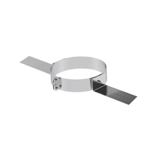 Хомут на кронштейн - элемент для крепления дымоходной трубы к наружной или внутренней стене. С помощью кронштейна дымоход крепится на стену. Хомут выполняет функцию крепления самого дымохода к монтажному кронштейну. Изготовлен из жаростойкой нержавеющей стали.