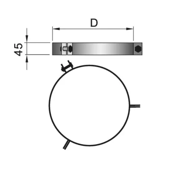 Хомут под растяжки - элемент для фиксации трубы дымохода на крыше или чердаке с помощью гибких тросов или проволоки. Растяжки (тросы) крепятся к хомуту и подкровельной обрешётке, исключая его горизонтальное шатание. Хомут растяжки применяется в том случае, когда труба дымохода возвышается над кровлей более чем на 1,5 метра. Изготовлен из жаростойкой нержавеющей стали.