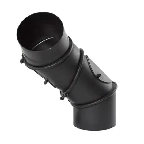 Колено 0-90° (отвод) Darco - регулируемое универсальное четырёх-сегментное колено, изготовлено из низколегированной стали 2 мм с покрытием из чёрной термостойкой краски. Используется как поворотный элемент дымохода для подключения к печи, котлу или камину. Основное назначение отвода - это изменение направления дымоходной трубы для обхода балки или иного препятствия. Крепление с помощью специальных зажимов, которые очень туго соединяют элементы колена. Оснащено ревизией для прочистки канала.