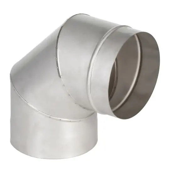 Колено 90° (отвод) – это основной элемент системы дымохода, с помощью которого меняют направление дымоходной трубы, когда необходимо обойти препятствие, или повернуть трубу дымохода в другом направлении. Согласно конструктивным особенностям колено дымохода 90° является неутеплённым. Изготавливается из разных марок жаропрочной нержавеющей стали.