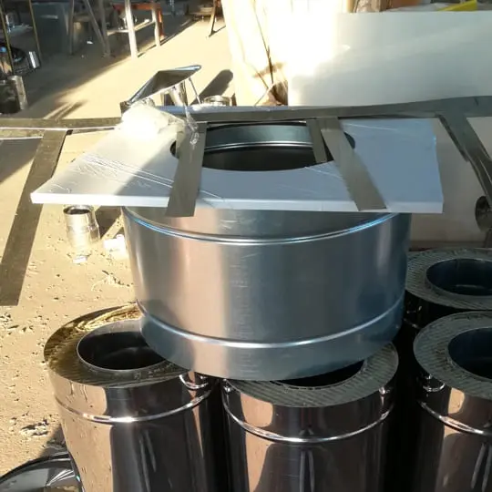 Потолочно-проходной узел (ППУ) - конструктивный элемент системы дымохода, предназначен для прохода дымоходной трубы через стену, перекрытие или другую плоскость для обеспечения пожарной безопасности от возгорания легковоспламеняющихся конструкций. Проход через перекрытие (проходной короб) представляет собой металлический короб с отверстием определённого диаметра для прохода утеплённой трубы дымохода. Изготавливается из нержавеющей стали (нижний лист) и оцинкованной стали (короб). Возможна комплектация двумя декоративными листами.