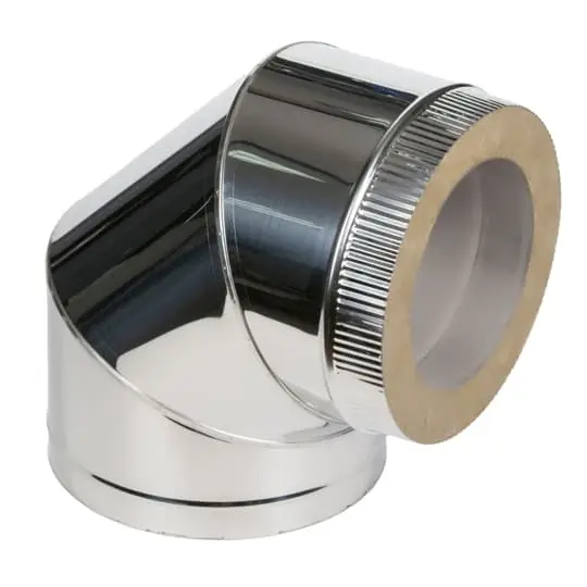 Колено-сэндвич 90° (отвод) – это основной элемент дымоходной системы, с помощью которого меняют направление дымохода, когда есть необходимость обойти препятствие, или повернуть дымовую трубу в другом направлении. Сэндвич-колено 90 градусов устанавливается как на вертикальных, так и на горизонтальных участках дымохода, что позволяет смонтировать конструкцию практически в любых условиях. Согласно конструктивным особенностям сэндвич-колено (отвод) дымохода является утеплённым. Изготавливается из разных марок жаропрочной нержавеющей стали.