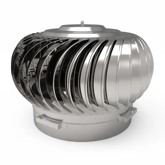 Турбодефлектор изготовлен из нержавеющей стали. Втулка из дюралюминия способна обеспечить защиту внутренней части дефлектора от обмерзания и коррозии, что значительно увеличивает срок его службы. Благодаря такой втулке, дефлектор будет функционировать дольше и требовать меньше технического обслуживания - всего 1 раз в год, в отличие от аналогов, которые обычно требуют обслуживания 2-3 раза в год. Кроме этого, наличие дополнительной зиговки лопастей защитит дефлектор от попадания прямых и косых осадков.